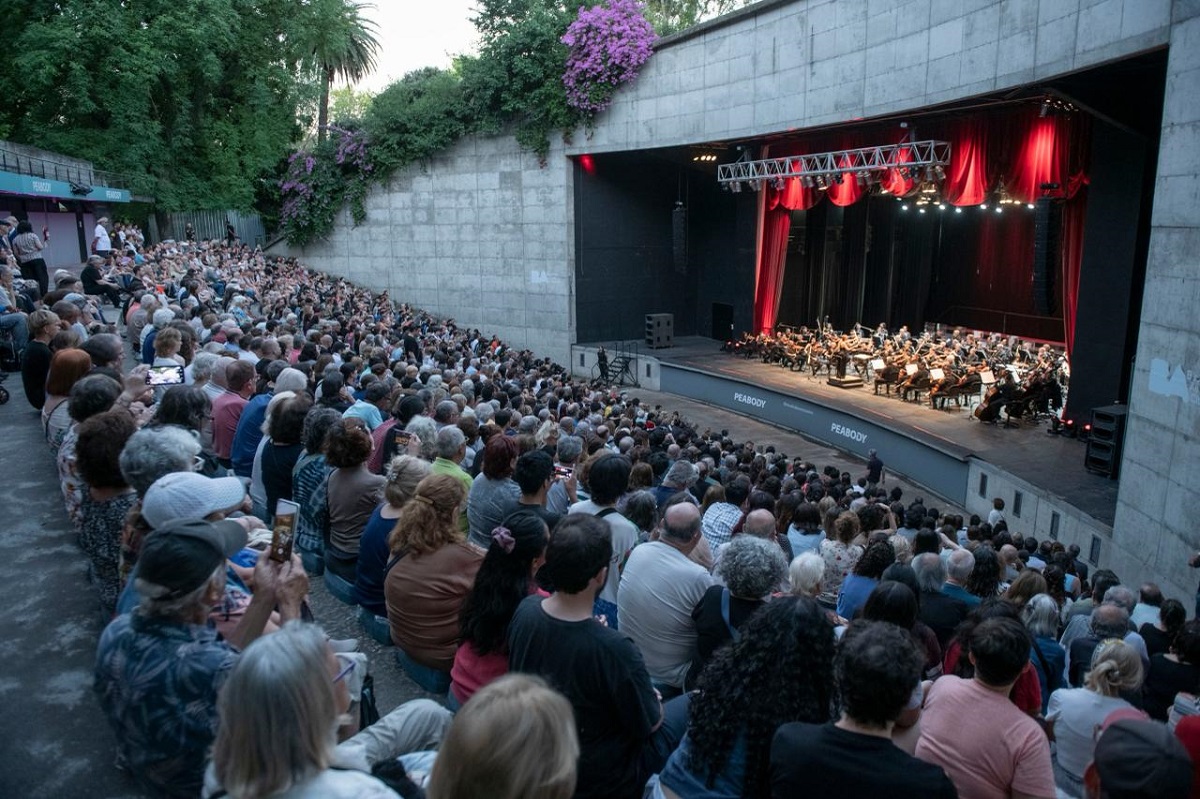 Milonga a cielo abierto en calle Corrientes y la Orquesta del Colón en Parque Centenario.
